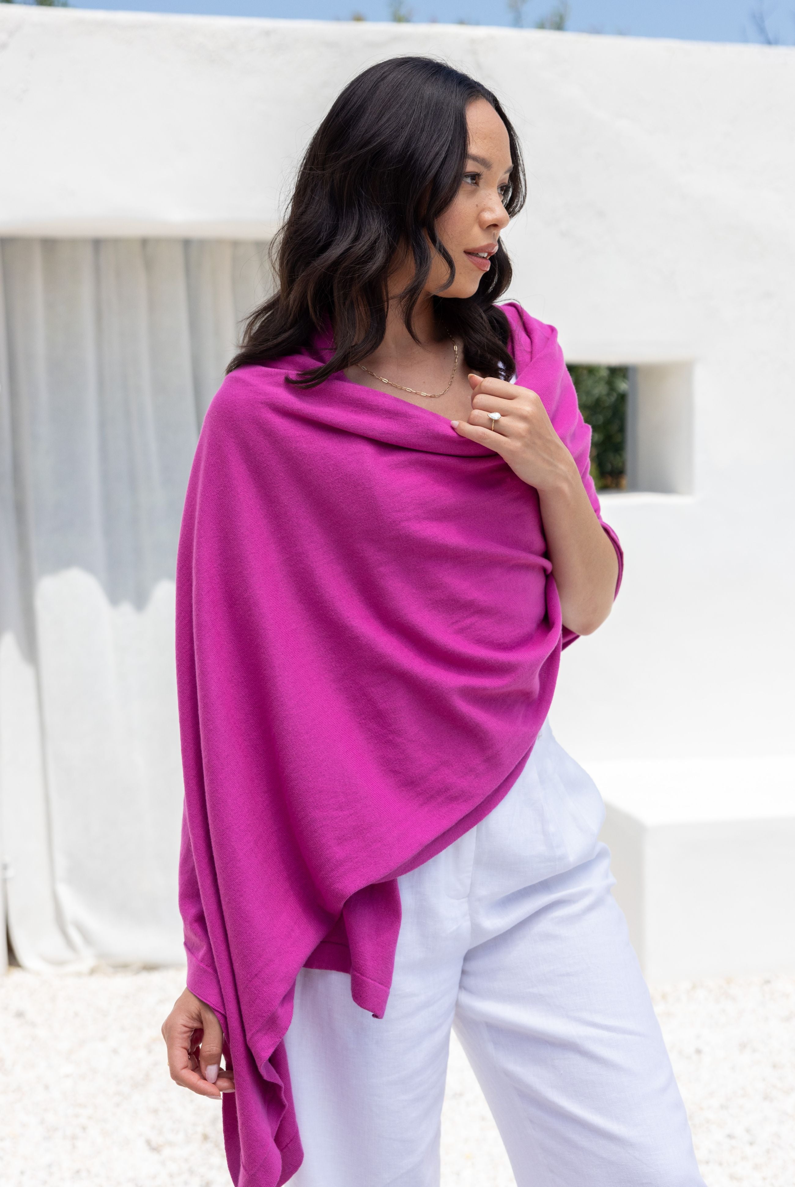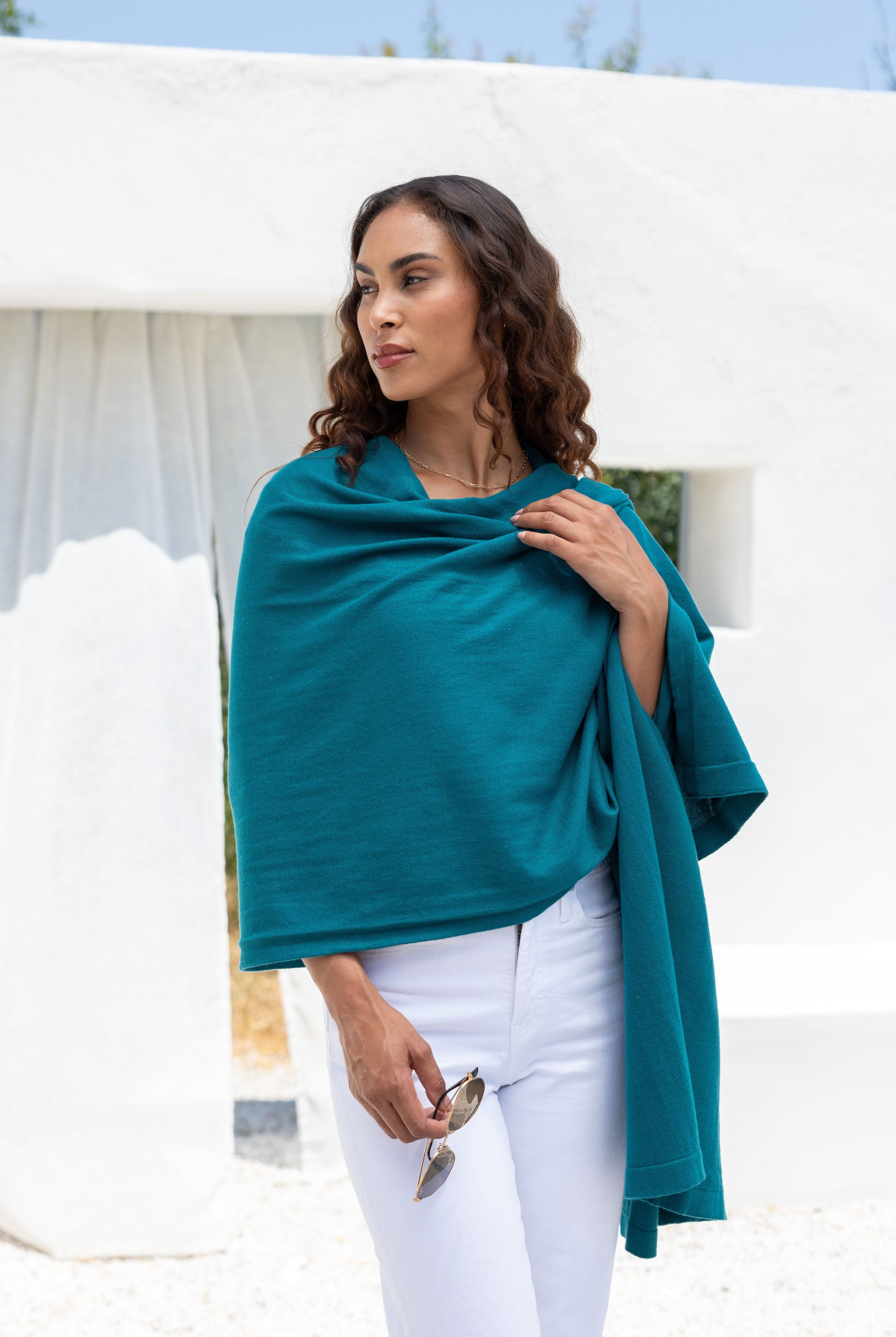 Breathable organic cotton, the coziest cashmere, soft and airy alpaca. We use the must luxurious natural fabrics on earth to create travel scarves, wraps and accessories that will make every trip feel first class.
