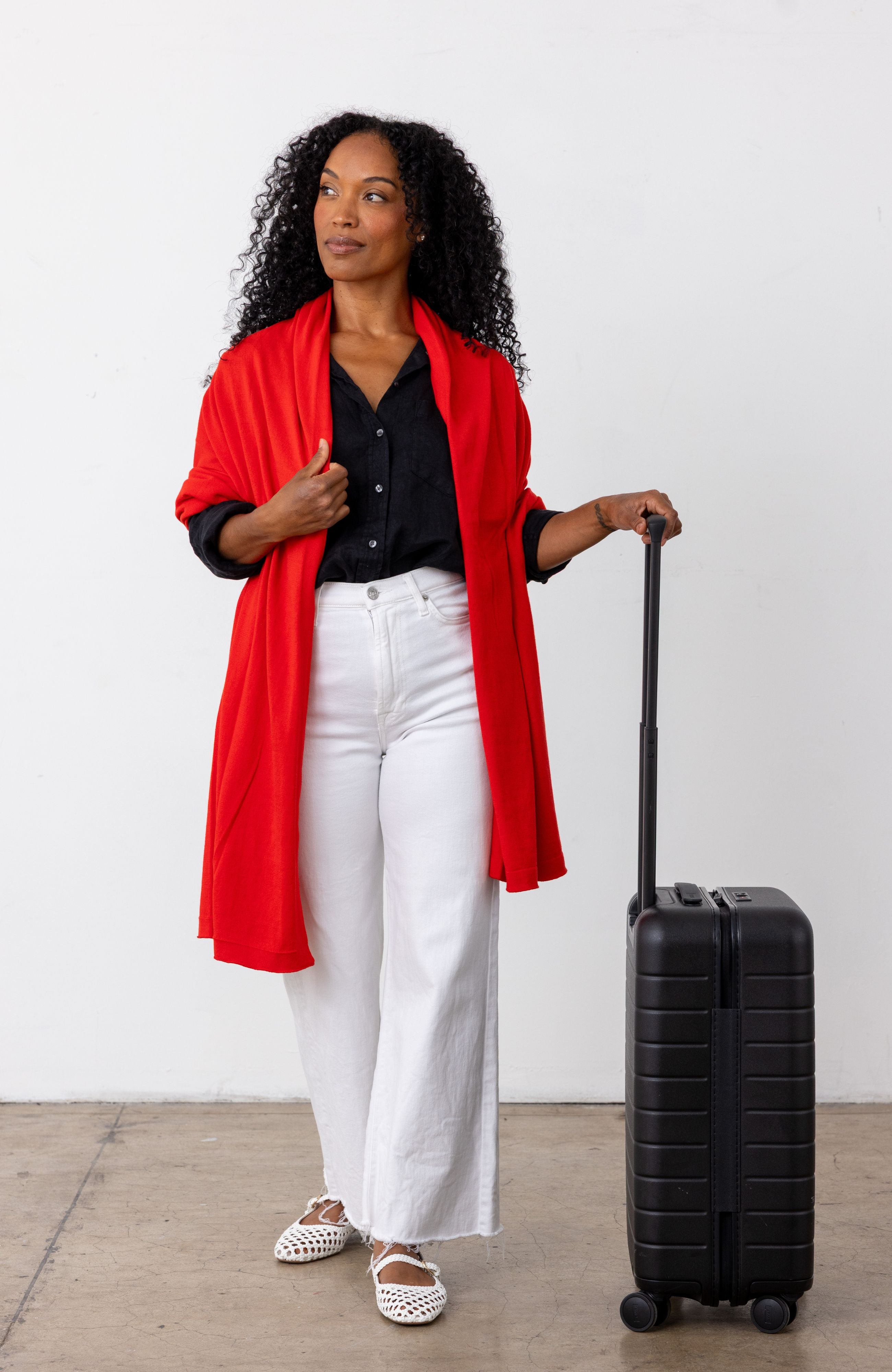 This scarf is perfect for travel. Warm and comfy on the plane. Great wrap for day time and heading into the evening. I need another one before my next trip!