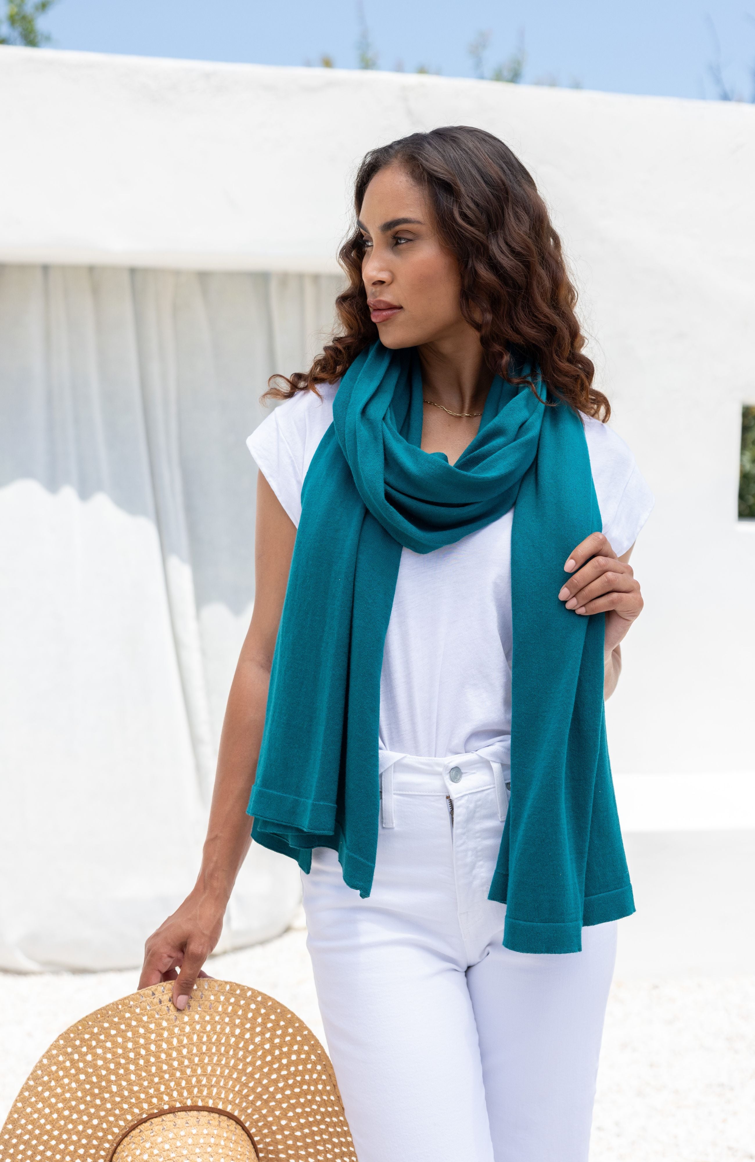Breathable organic cotton, the coziest cashmere, soft and airy alpaca. We use the must luxurious natural fabrics on earth to create travel scarves, wraps and accessories that will make every trip feel first class.