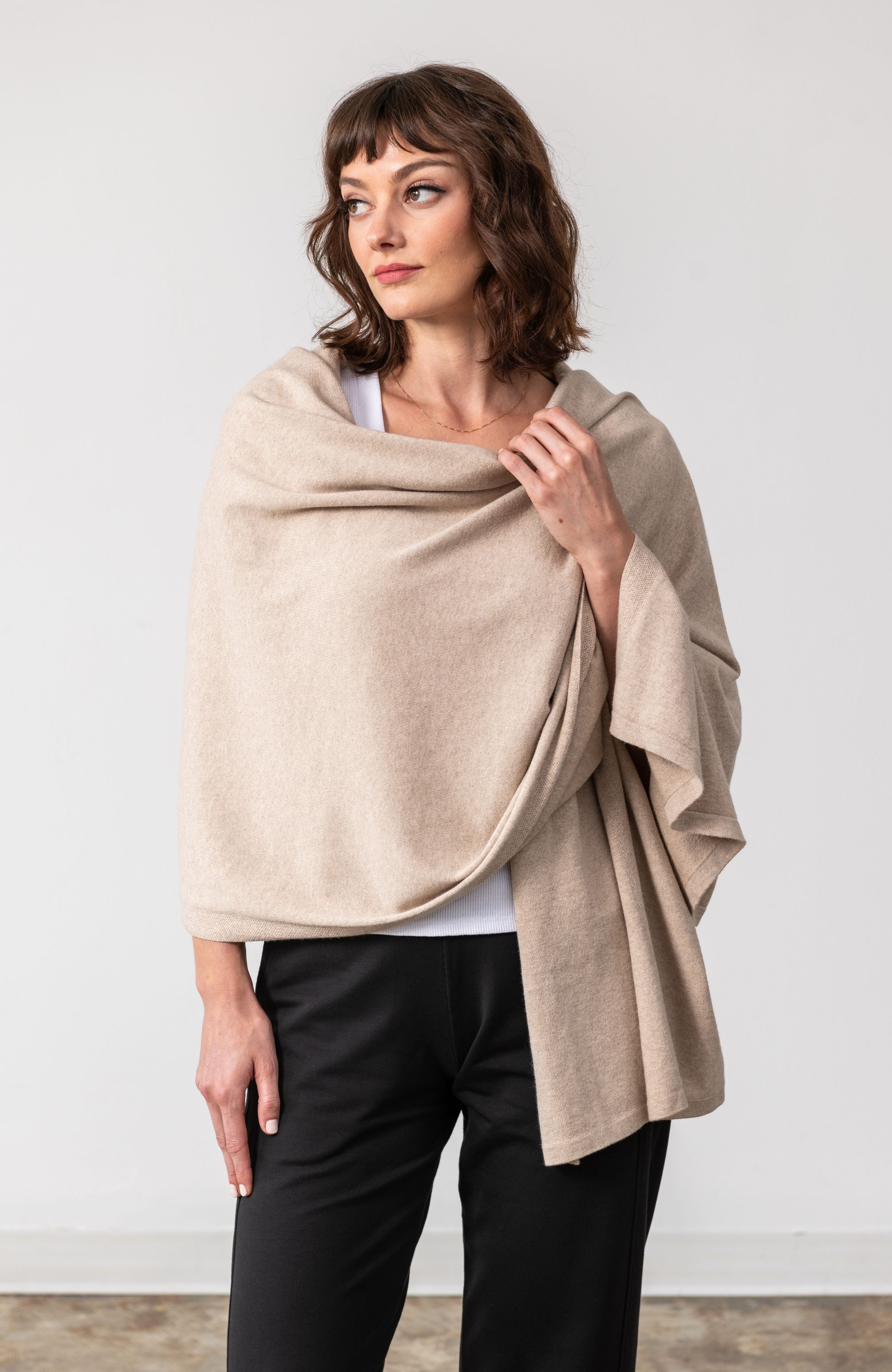 We combined our signature soft Organic Cotton with cloudlike Cashmere to produce the perfect combination for lightweight comfort with a luxurious drape. The new Cashmere Cotton Luxe collection was designed to be the ideal size and weight for wearing on a plane or out on the town while keeping you warm and looking chic. Don't miss your chance to experience the ultimate luxury and comfort of our new collection.