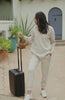 Meet your new favorite wardrobe staple — the Million Miles Quarter Zip Pullover. Designed with an oversized collar, drop-tail hem, and newly added front pockets, it’s the perfect blend of comfort and sophistication. Whether you’re settling in for a long-haul flight or sipping espresso in a European café, this polished yet cozy layer keeps you effortlessly put-together wherever your travels take you.