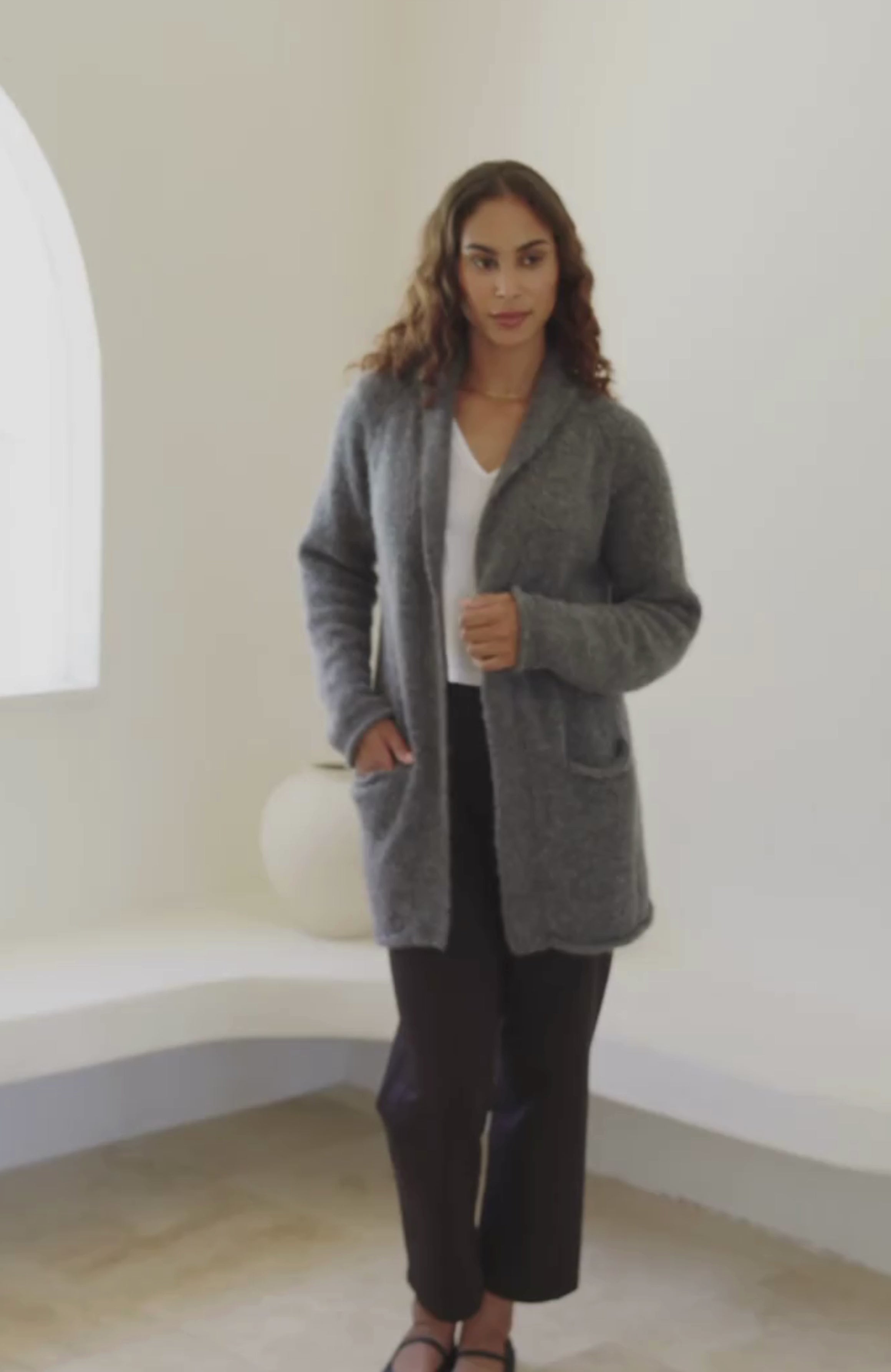 The Alpaca Cardigan is designed for ultimate comfort, featuring roomy front pockets to keep essentials close and a length that hits just above the knee, providing an added touch of warmth and cozy coverage wherever you go. With its relaxed fit, it’s perfect for effortless, everyday wear.