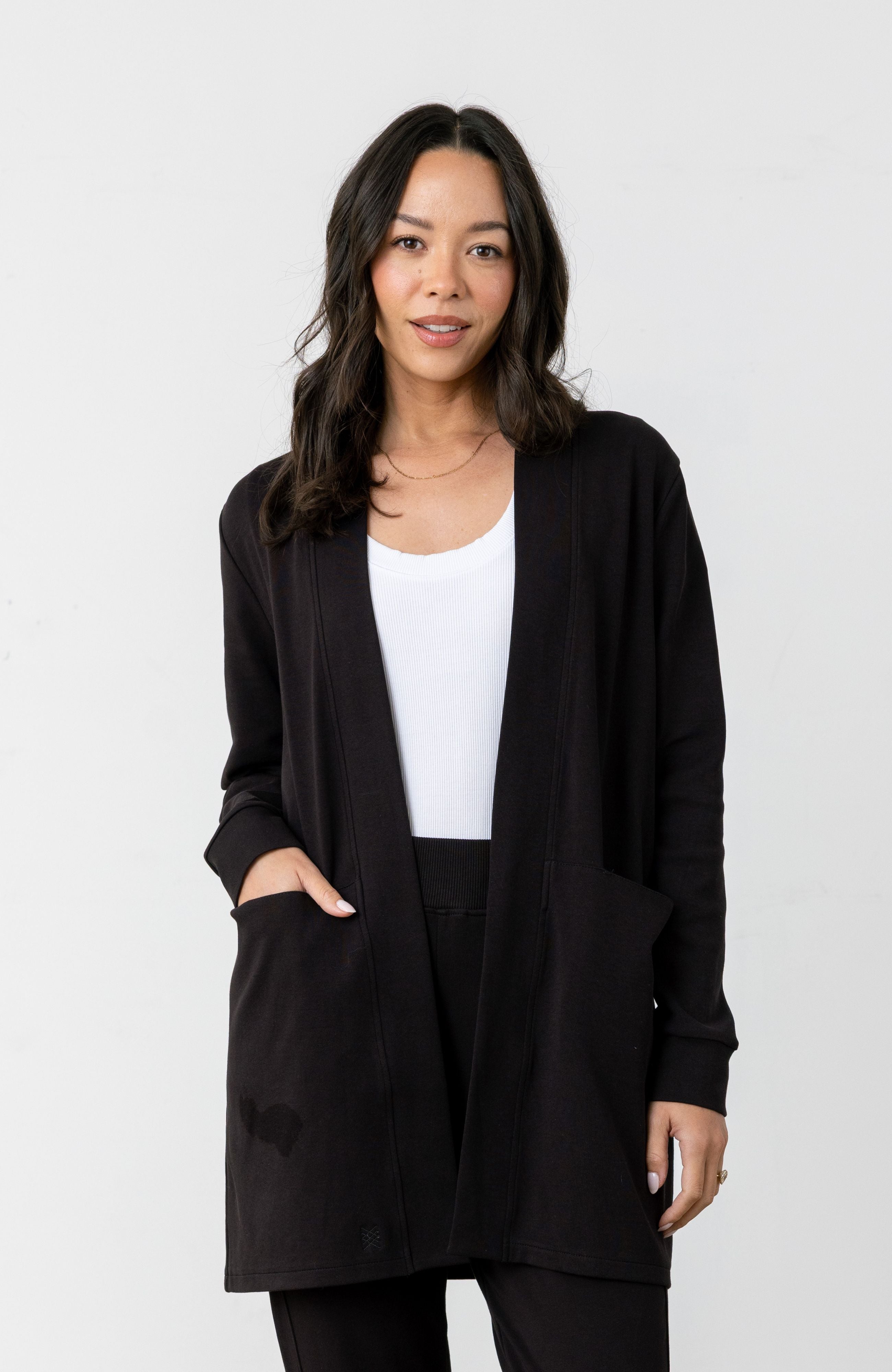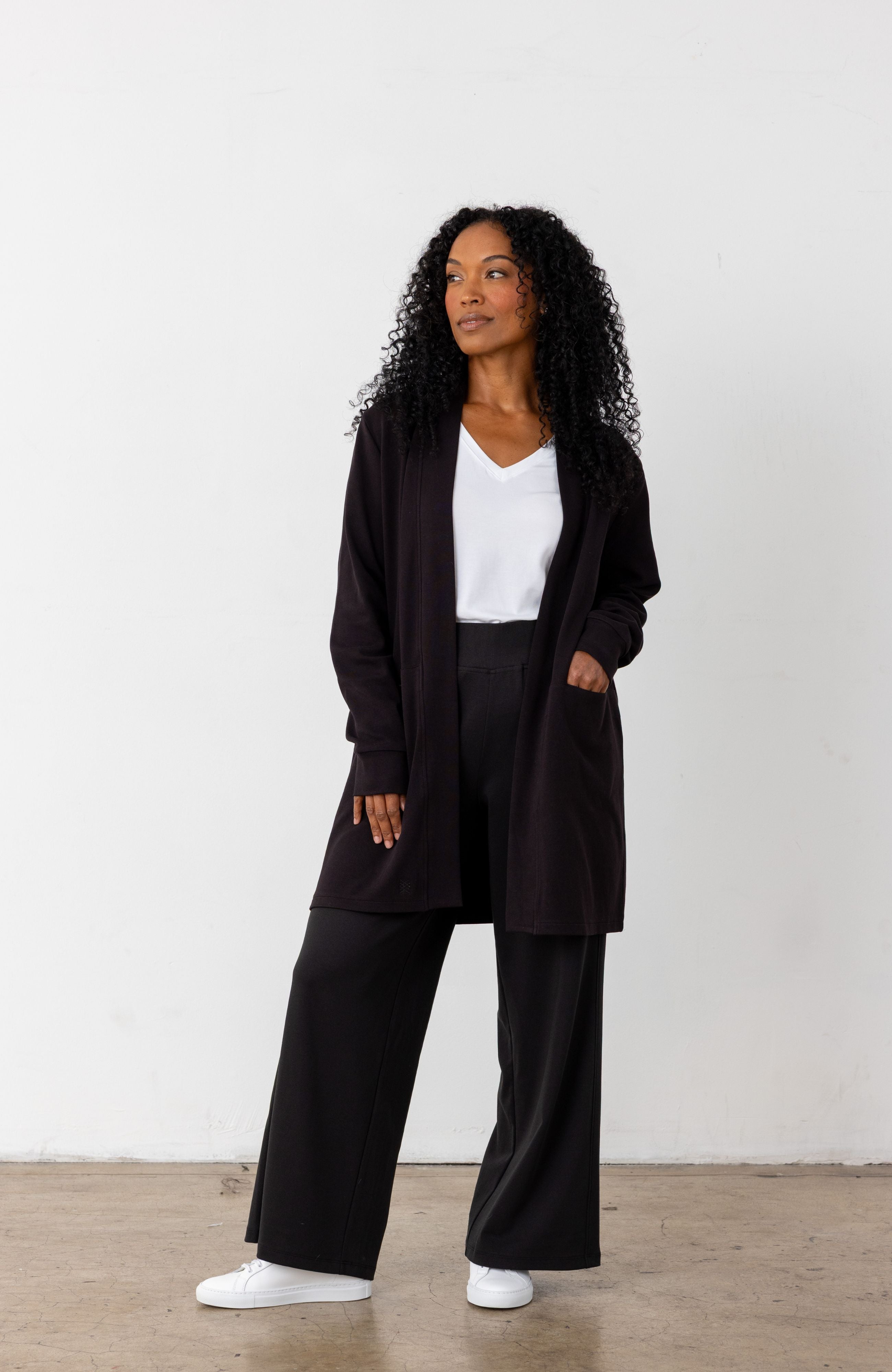 The Cardigan and Wide Leg Pant Travel Set - Black