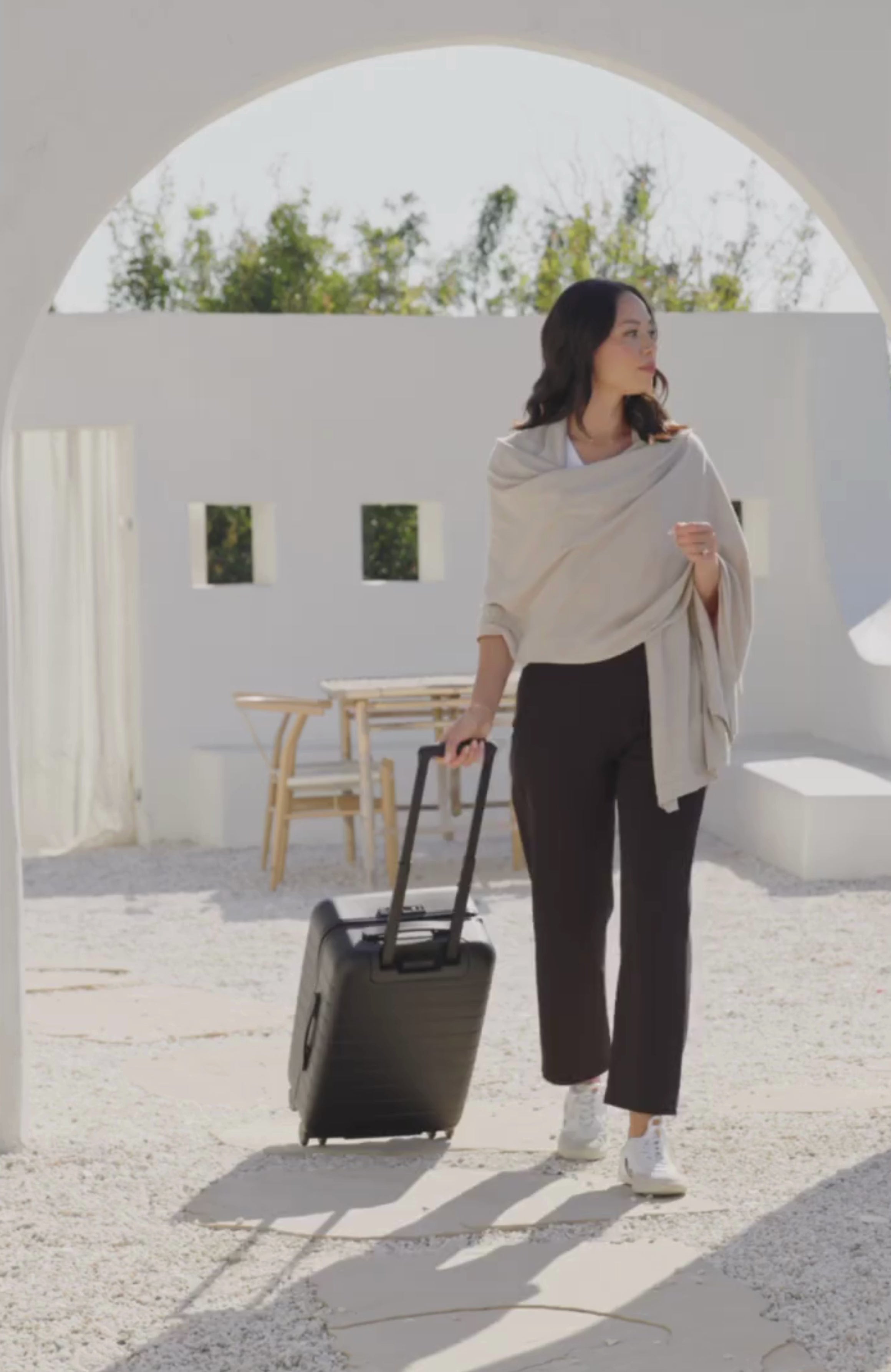 With 20+ ways to wear, this all-in-one scarf + shawl + blanket will keep you comfortable anywhere your travels take you.