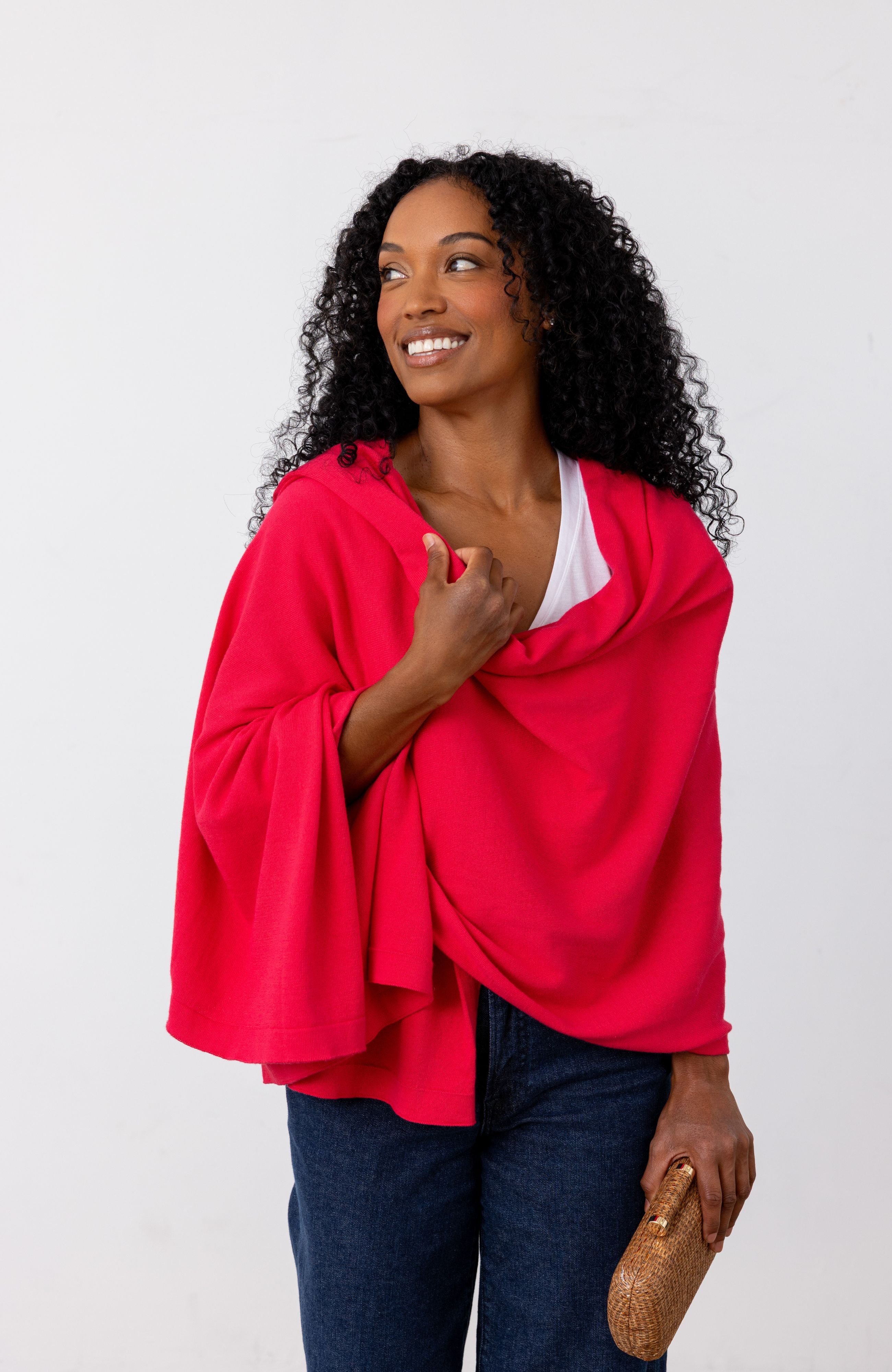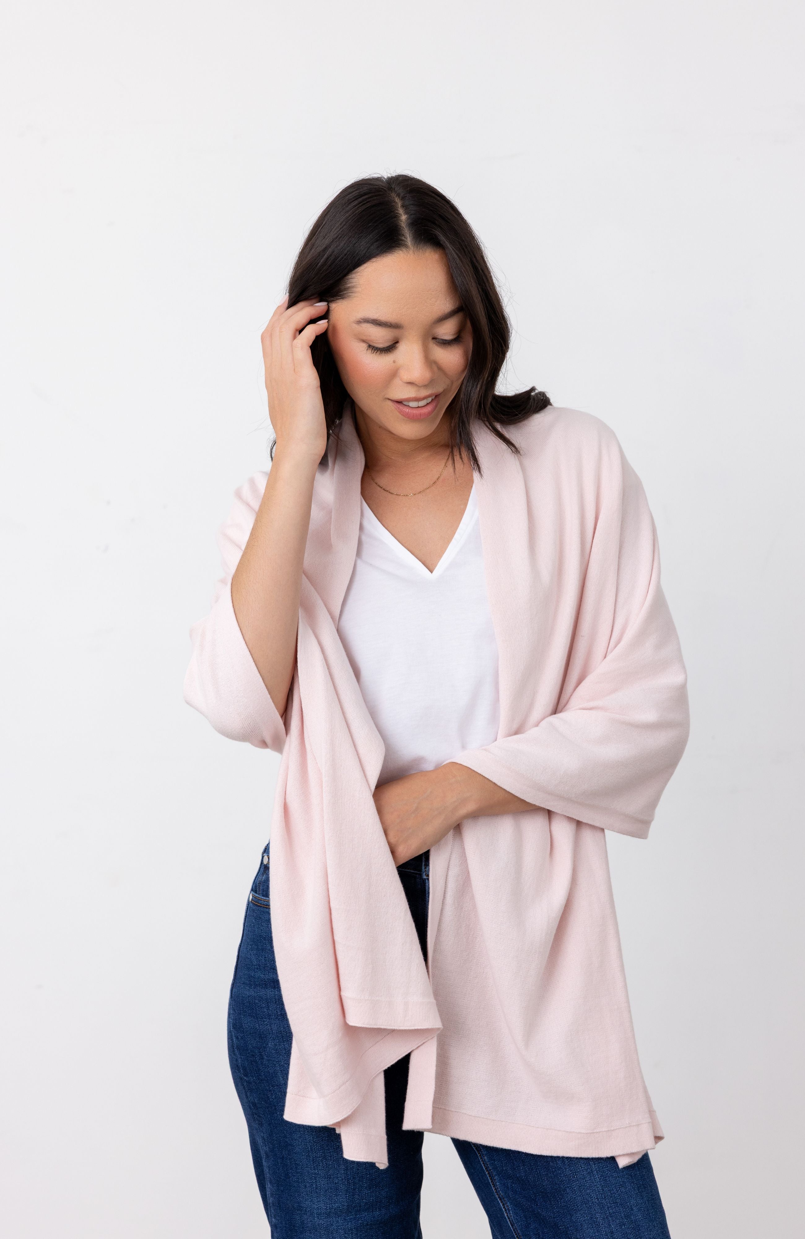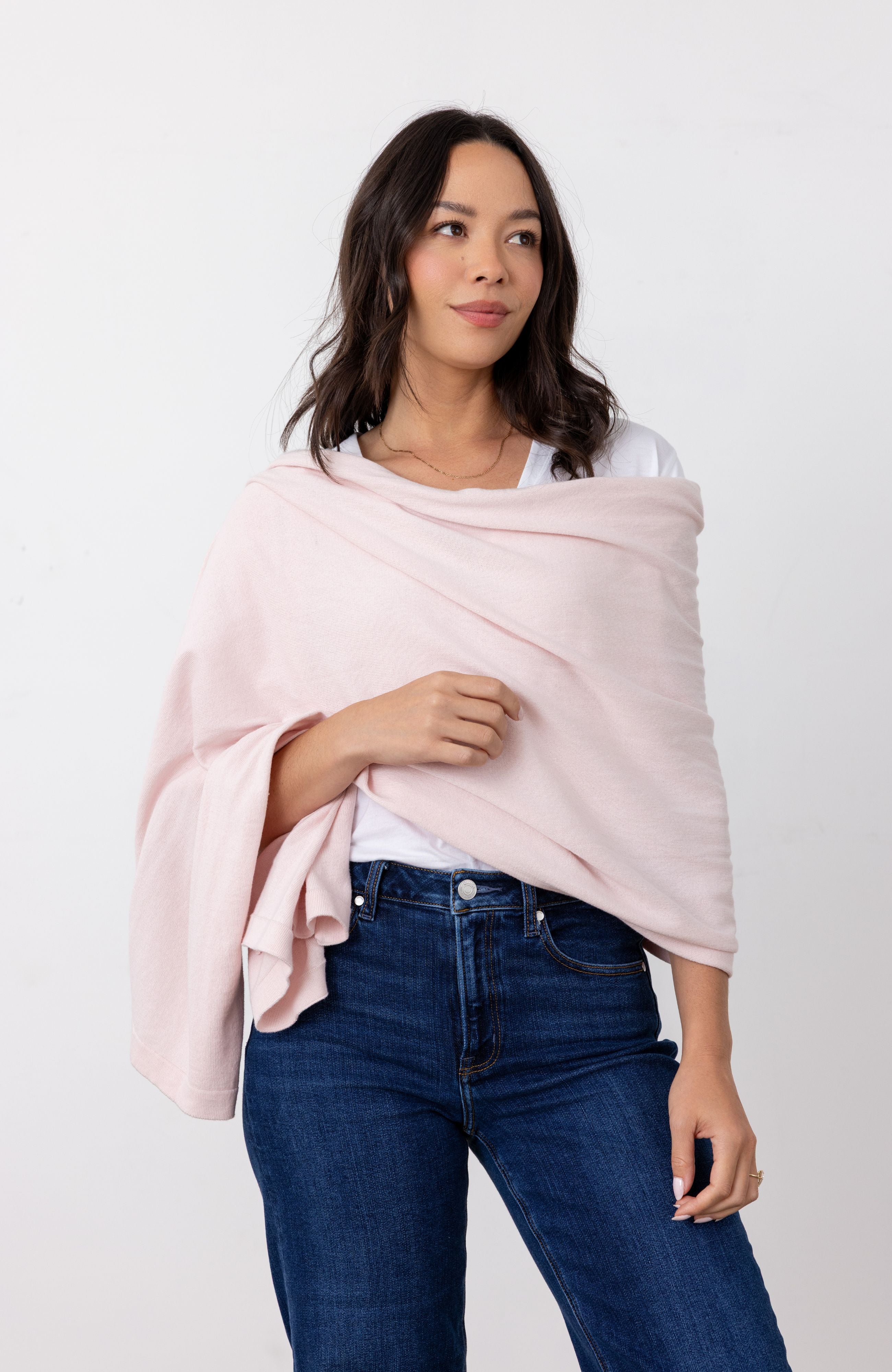 With three ways to wear, this all-in-one scarf + shawl + blanket will keep you comfortable anywhere your travels take you. It’s the perfect way to add sophistication to your zoom attire, a cozy extra layer for lounging at home and the must have accessory for any evening out on the town.