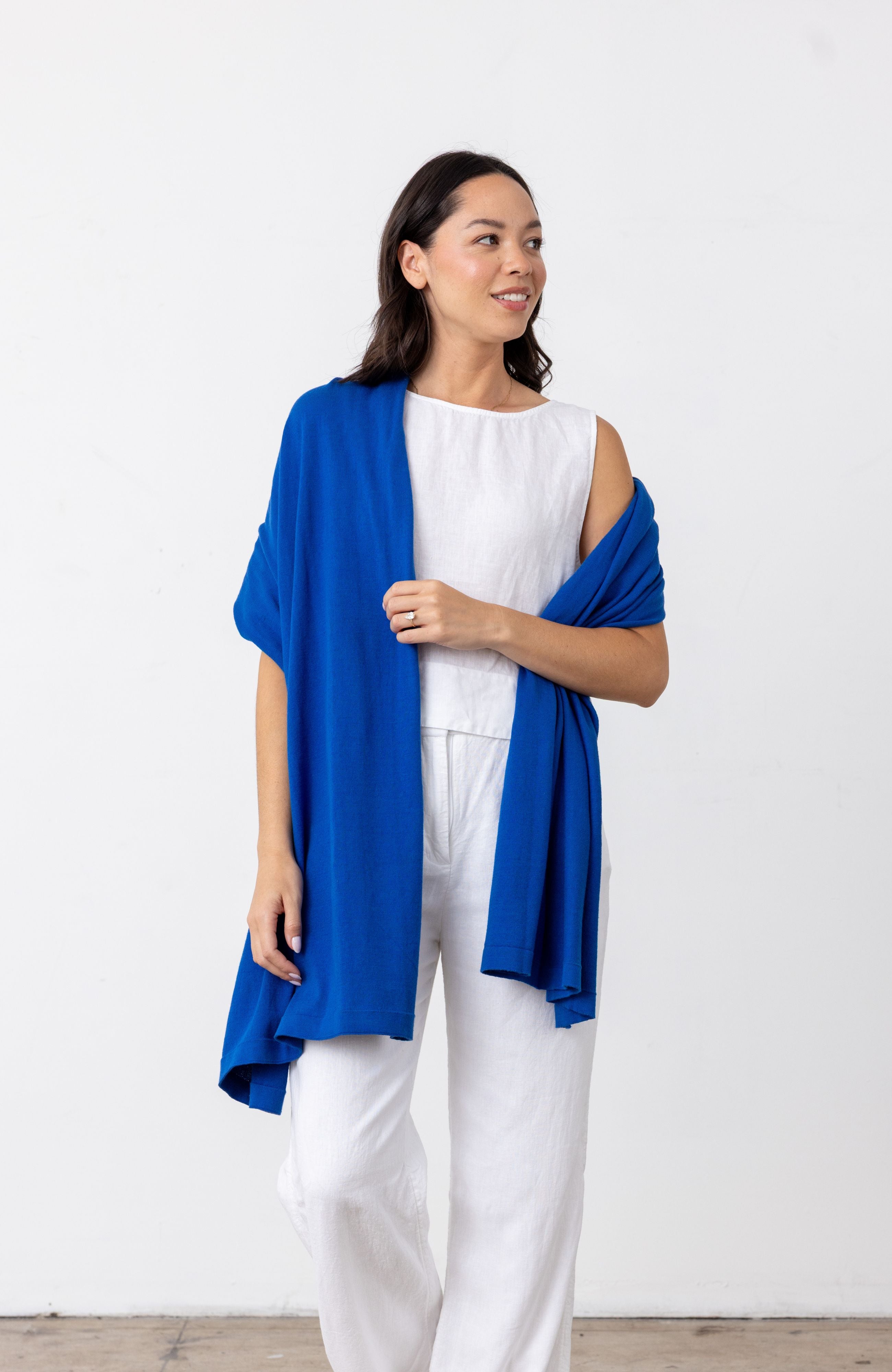 With three ways to wear, this all-in-one scarf + shawl + blanket will keep you comfortable anywhere your travels take you.
